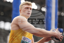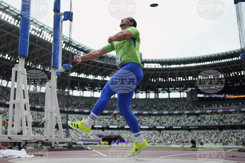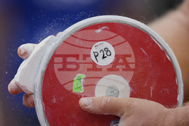 Lithuania's Andrius Gudzius competes in the men's discus throw qualification at the World Athletics Championships in Tokyo, Saturday, Sept. 20, 2025. (AP Photo/Ashley Landis)