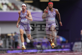 France's Jimmy Gressier and Australia's Jack Rayner race in a men's 5,000 meters heat at the World Athletics Championships in Tokyo, Friday, Sept. 19, 2025. (AP Photo/Petr David Josek)