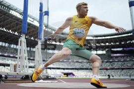 New Zealand's Connor Bell competes during the men's discus throw qualification at the World Athletics Championships in Tokyo, Saturday, Sept. 20, 2025. (AP Photo/Bernat Armangue)