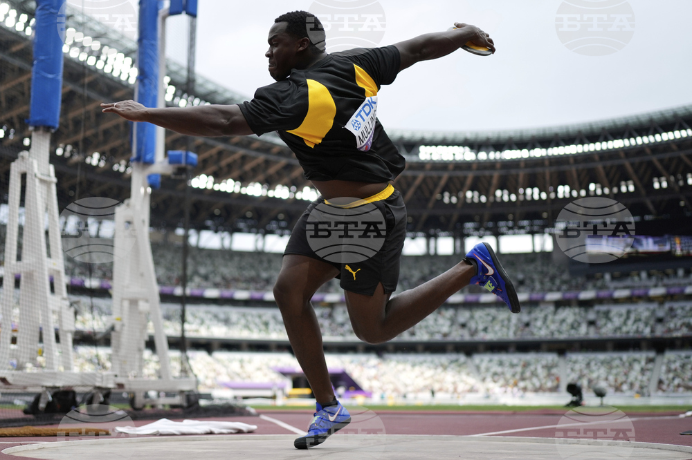 Jamaica's Fedrick Dacres competes during the men's discus throw qualification at the World Athletics Championships in Tokyo, Saturday, Sept. 20, 2025. (AP Photo/Bernat Armangue)