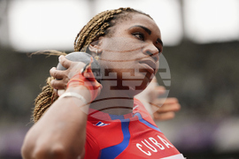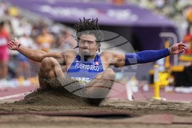 Cuba's Mario Alberto Diaz competes during the men's discus throw qualification at the World Athletics Championships in Tokyo, Saturday, Sept. 20, 2025. (AP Photo/Bernat Armangue)