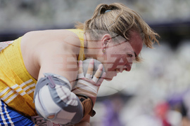 Serbia's Adriana Vilagos reacts after an attempt in the women's javelin throw qualification at the World Athletics Championships in Tokyo, Friday, Sept. 19, 2025. (AP Photo/Matthias Schrader)
