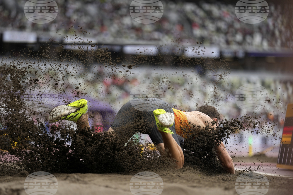 Germany's Leo Neugebauer competes in the decathlon high jump at the World Athletics Championships in Tokyo, Saturday, Sept. 20, 2025. (AP Photo/David J. Phillip)