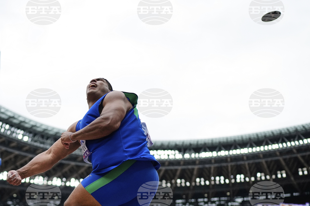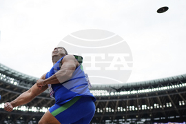 Brazil's Wellinton Fernandes Da Cruz Filho competes during the men's discus throw qualification at the World Athletics Championships in Tokyo, Saturday, Sept. 20, 2025. (AP Photo/Bernat Armangue)