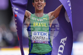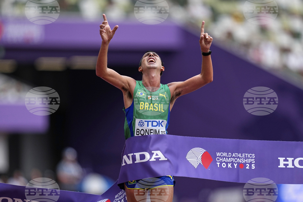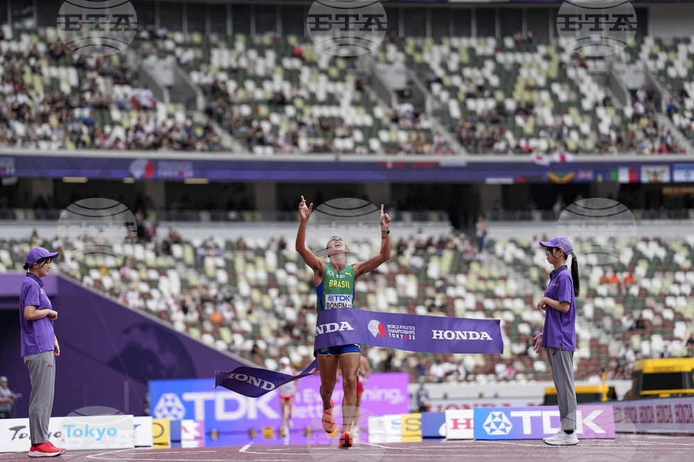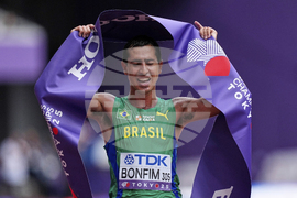 Brazil's Caio Bonfim wins the men's 20 kilometers race walk at the World Athletics Championships in Tokyo, Saturday, Sept. 20, 2025. (AP Photo/Bernat Armangue)