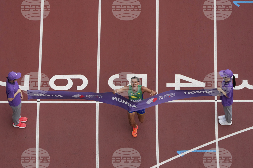Brazil's Caio Bonfim wins the men's 20 kilometers race walk at the World Athletics Championships in Tokyo, Saturday, Sept. 20, 2025. (AP Photo/David J. Phillip)