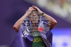 Brazil's Caio Bonfim after winning the men's 20 kilometers race walk gold medal at the World Athletics Championships in Tokyo, Saturday, Sept. 20, 2025. (AP Photo/Bernat Armangue)