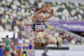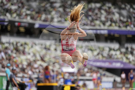 Ireland's Kate O'Connor makes an attempt in the heptathlon long jump at the World Athletics Championships in Tokyo, Saturday, Sept. 20, 2025. (AP Photo/Matthias Schrader)