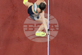 Ireland's Kate O'Connor reacts after making an attempt in the women's heptathlon high jump at the World Athletics Championships in Tokyo, Friday, Sept. 19, 2025. (AP Photo/Eugene Hoshiko)