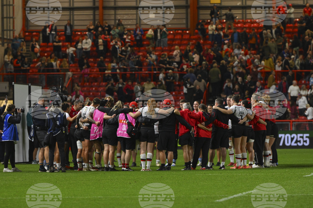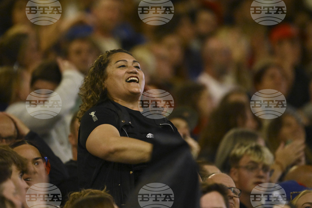 New Zealand's fans cheer after the Women's Rugby World Cup 2025 semifinal match between New Zealand and Canada in Bristol, England, Friday, Sept. 19, 2025.(AP Photo/Anthony Upton)