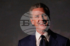 California Gov. Gavin Newsom smiles during a press conference where he signed climate initiative bills at the Academy of Sciences, Friday, Sept. 19, 2025, in San Francisco. (AP Photo/Camille Cohen)