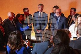 California Gov. Gavin Newsom hosts a press conference and signs a slew of climate initiative bills at the Academy of Sciences on Friday, Sept. 19, 2025 in San Francisco. (AP Photo/Camille Cohen)