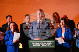 Governor Gavin Newsom speaks at a event where he announced signing a package of climate and energy bills on Friday, September 19, 2025 in San Francisco. (Lea Suzuki/San Francisco Chronicle via AP)