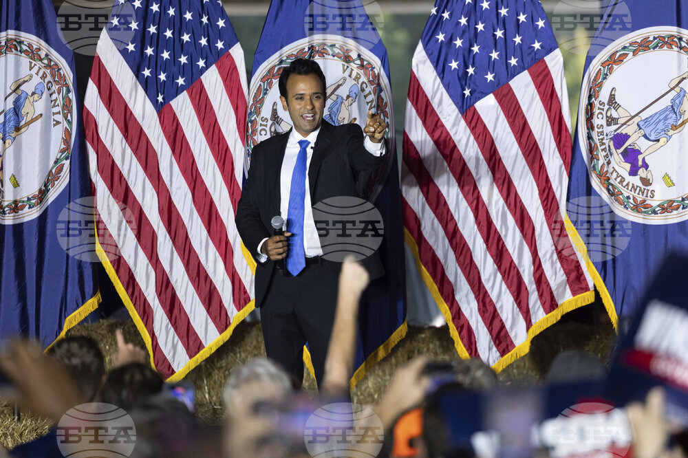 Ohio Republican gubernatorial candidate Vivek Ramaswamy speaks at a campaign rally for Virginia Republican gubernatorial candidate Winsome Earle-Sears in Chesterfield, Va., Friday, Sept. 19, 2025. (Mike Kropf/Richmond Times-Dispatch via AP)