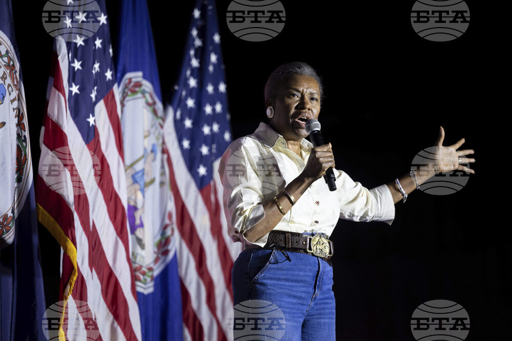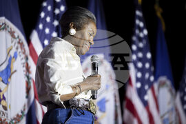 Virginia Republican gubernatorial candidate Winsome Earle-Sears speaks to the crowd during a campaign rally in Chesterfield, Va., Friday, Sept. 19, 2025. (Mike Kropf/Richmond Times-Dispatch via AP)