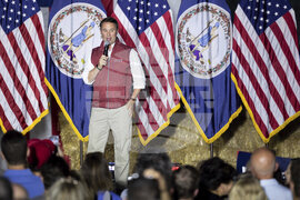 Virginia Gov. Glenn Youngkin speaks at a campaign rally for Republican gubernatorial candidate Winsome Earle-Sears in Chesterfield, Va., Friday, Sept. 19, 2025. (Mike Kropf/Richmond Times-Dispatch via AP)