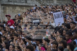 People attend Silvio Rodríguez's launch of his five-country tour, in Havana, Friday, Sept. 19, 2025. (AP Photo/Ramon Espinosa)