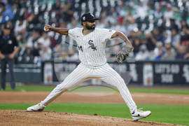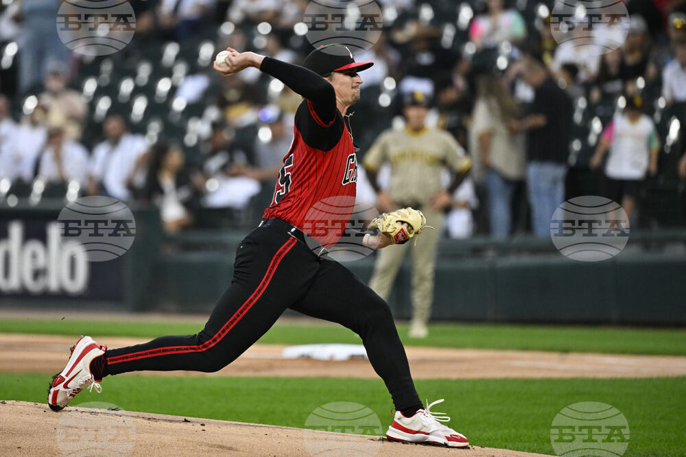 San Diego Padres pitcher Dylan Cease delivers during the first inning of a baseball game against the Chicago White Sox, Friday, Sept. 19, 2025, in Chicago. (AP Photo/Matt Marton)