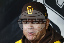 San Diego Padres manager Mike Shildt speaks before a baseball game against the Chicago White Sox, Saturday, Sept. 20, 2025, in Chicago. (AP Photo/Kamil Krzaczynski)