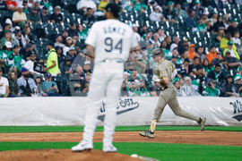 Chicago White Sox's Miguel Vargas rounds the bases after hitting a two-run home run during the first inning of a baseball game against the San Diego Padres, Friday, Sept. 19, 2025, in Chicago. (AP Photo/Matt Marton)