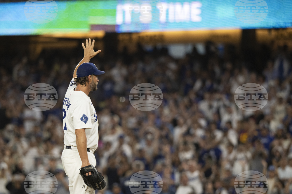 Los Angeles Dodgers fans applaud for Clayton Kershaw before a baseball game between the Dodgers and the San Francisco Giants in Los Angeles, Friday, Sept. 19, 2025. (AP Photo/Kyusung Gong)