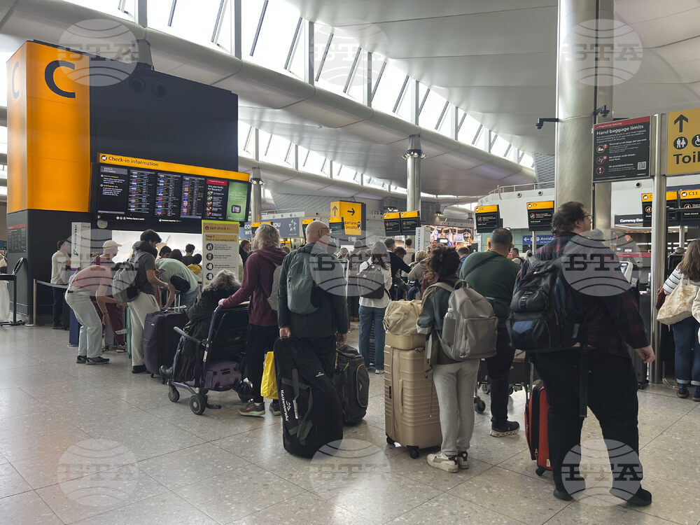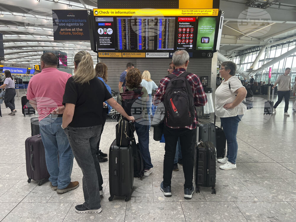 People queuing at T2 London Heathrow Airport, after flights were delayed and cancelled at airports including Heathrow after an alleged cyber attack targeted a service provider for check-in and boarding systems on Saturday Sept. 20, 2025. (Maja Smiejkowska/PA via AP)
