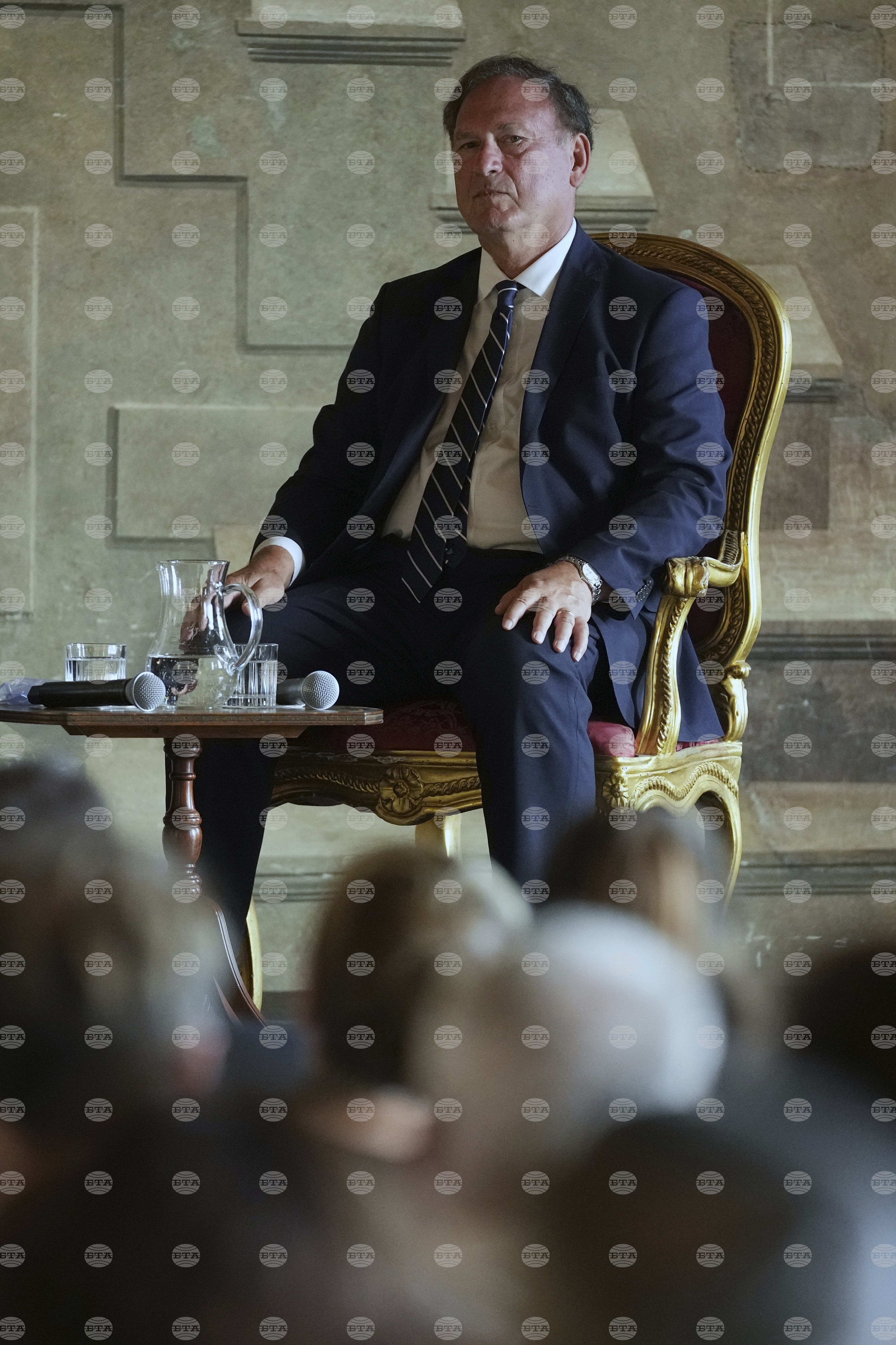 U.S. Ambassador to the Holy See is Brian Burch delivers his speech during a meeting with Supreme Court Justice Samuel Alito , in Rome, Saturday, Sept. 20, 2025. (AP Photo/Andrew Medichini)