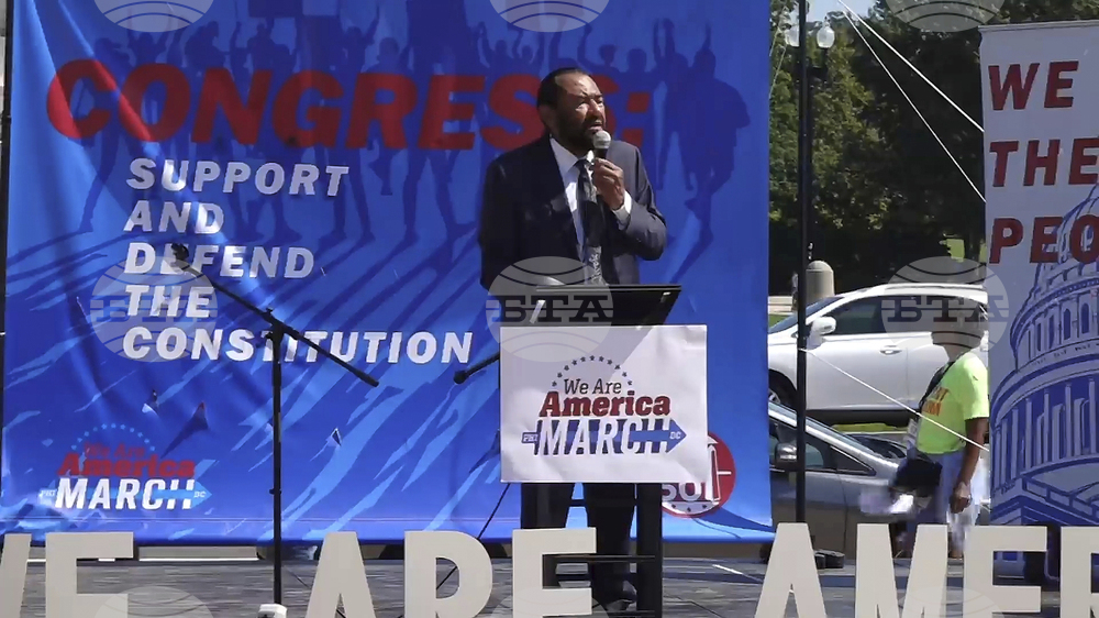 Rep. Al Green, D-Texas, speaks at the We Are America March, Friday, Sept. 19, 2025, in Washington. (AP Photo/ Mike Pesoli)