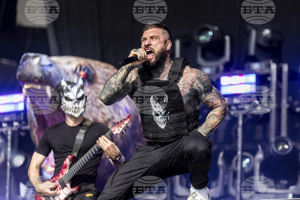 Aleksandr Shikolai of Slaughter To Prevail performs during Louder Than Life music festival seen on Sunday, Sept. 21, 2025, in Louisville, Ky. (Photo by Amy Harris/Invision/AP)