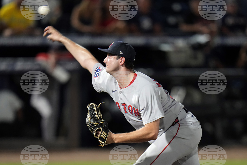 Boston Red Sox pitcher Garrett Whitlock delivers to the Tampa Bay Rays during the eighth inning of a baseball game Saturday, Sept. 20, 2025, in Tampa, Fla. (AP Photo/Chris O'Meara)