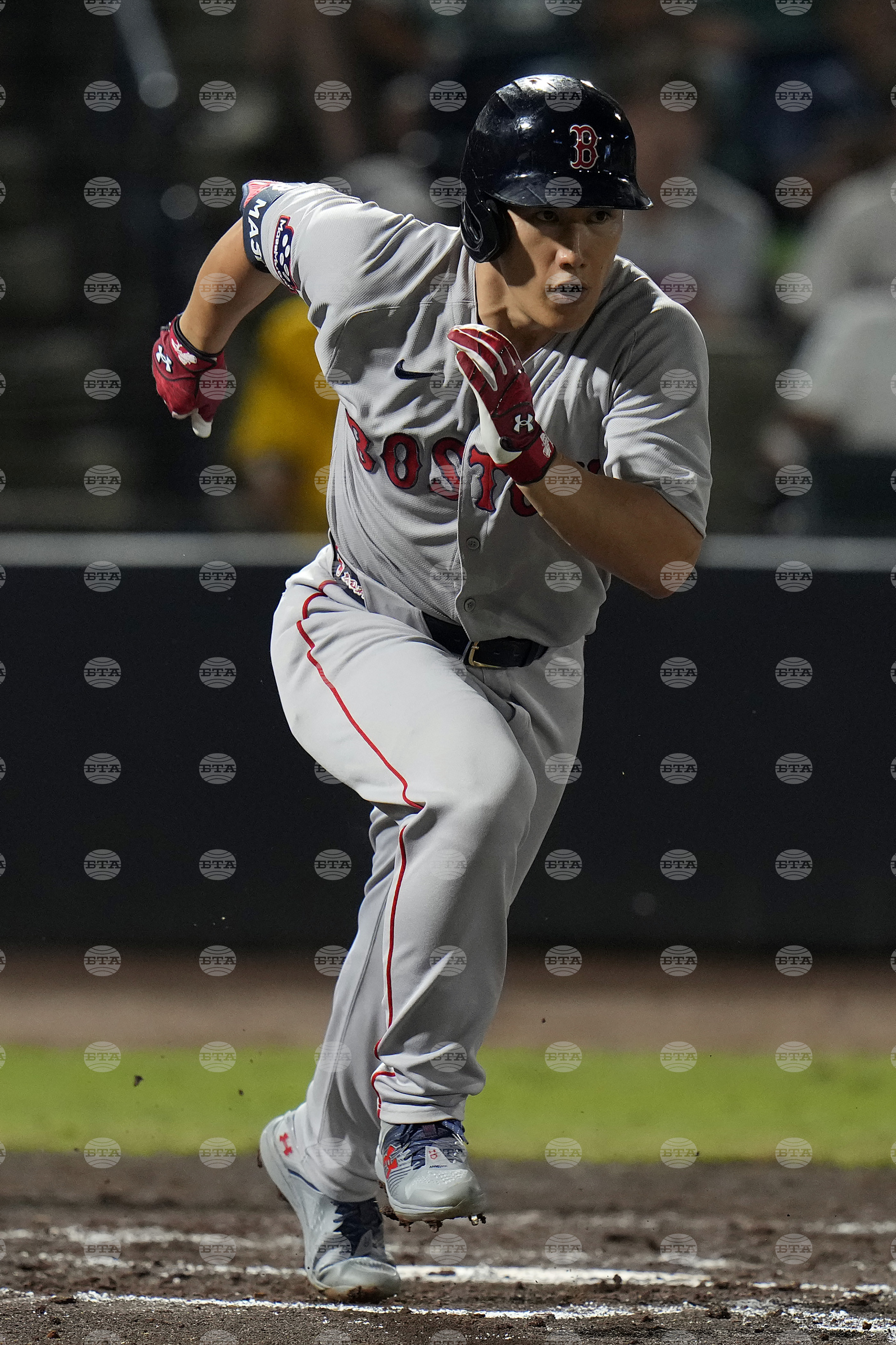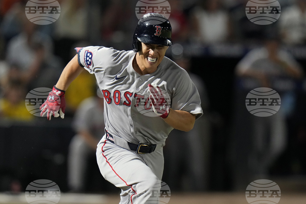Boston Red Sox's Masataka Yoshida, of Japan, runs after grounding out against Tampa Bay Rays pitcher Joe Boyle during the third inning of a baseball game Sunday, Sept. 21, 2025, in Tampa, Fla. (AP Photo/Chris O'Meara)
