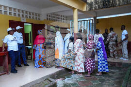 People queue to cast their votes in the constitutional referendum, in Conakry, Guinea, Sunday, Sept. 21, 2025. (AP Photo/Misper Apawu)
