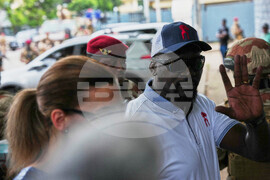 Guinea's interim President, Gen. Mamadi Doumbouya, departs with his wife after casting his vote in the constitutional referendum in Conakry, Guinea, Sunday, Sept. 21, 2025 (AP Photo/Misper Apawu)