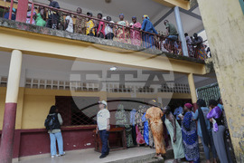 Voters queue to cast their votes in the constitutional referendum, in Conakry, Guinea, Sunday, Sept. 21, 2025. (AP Photo/Misper Apawu)