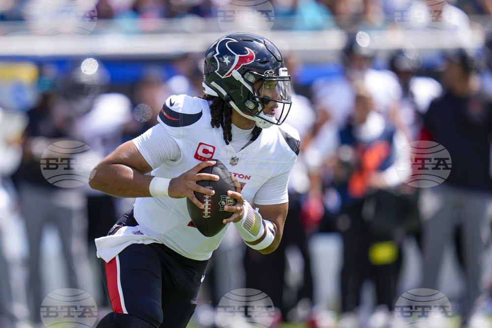 Houston Texans quarterback CJ. Stroud Jacksonville Jaguars during the first half of an NFL football game Sunday, Sept. 21, 2025, in Jacksonville, Fla. (AP Photo/John Raoux)
