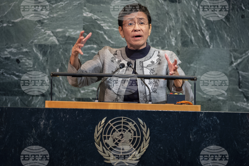 Maria Ressa, Nobel Peace Prize-winning journalist, addresses the 80th session of the UN General Assembly at United Nations headquarters, Monday, Sept. 22, 2025. (AP Photo/Angelina Katsanis)