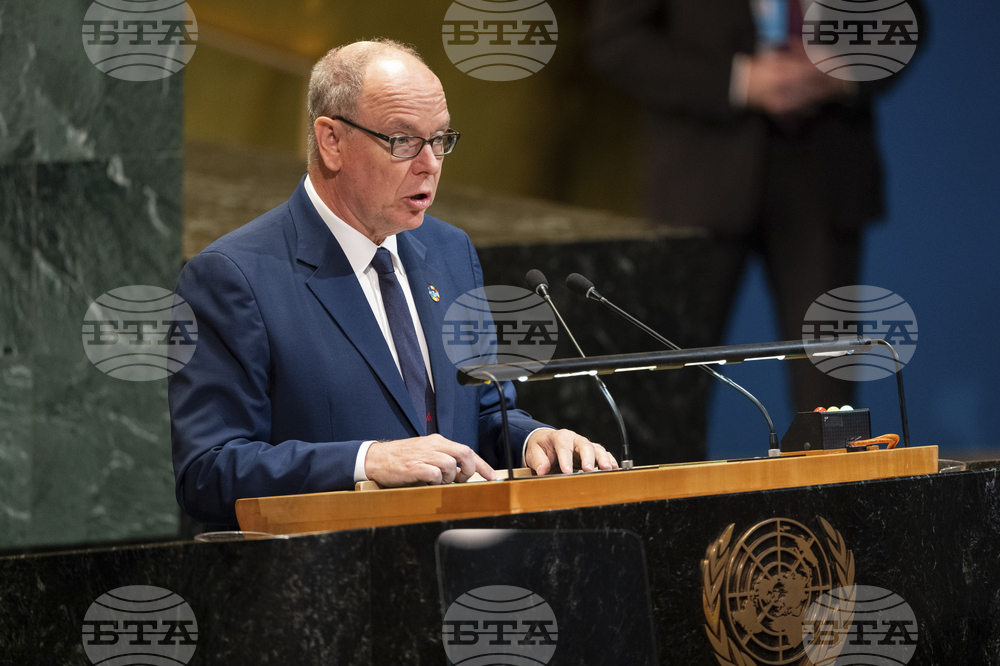 Prince Albert II, the Prince of Monaco, addresses the 80th session of the UN General Assembly at the High-level meeting convened on the thirtieth anniversary of the Fourth World Conference on Women at the United Nations headquarters, Monday, Sept. 22, 2025. (AP Photo/Angelina Katsanis)