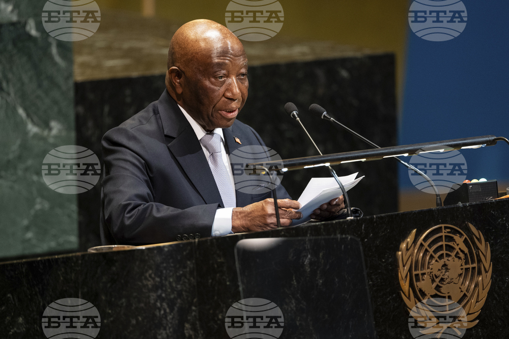 Joseph Boakai, the president of Liberia, addresses the 80th session of the UN General Assembly at United Nations headquarters, Monday, Sept. 22, 2025. (AP Photo/Angelina Katsanis)