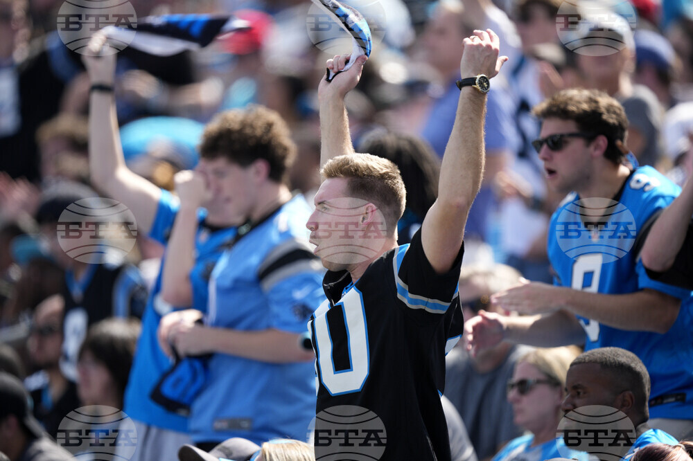 Fans cheer during the second half of an NFL football game between the Carolina Panthers and the Atlanta Falcons, Sunday, Sept. 21, 2025, in Charlotte, N.C. (AP Photo/Jacob Kupferman)