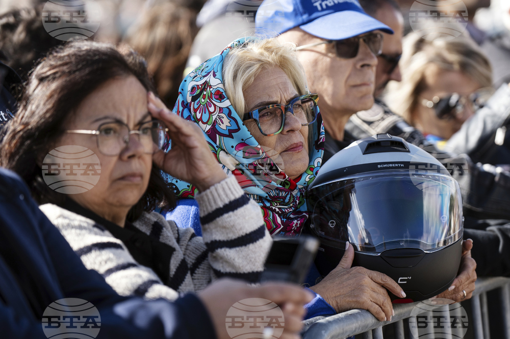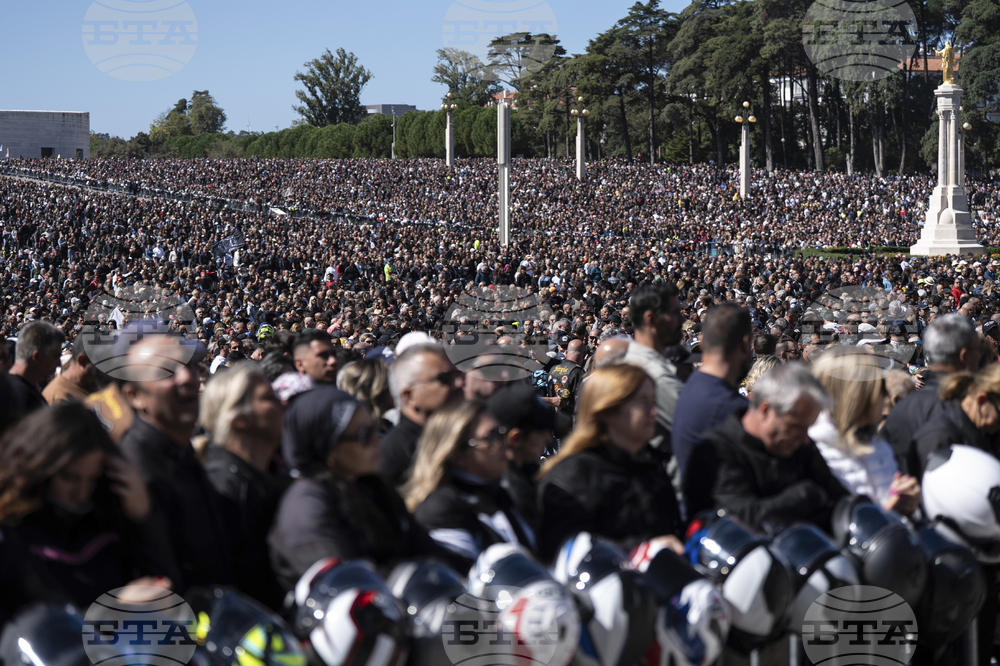 Motorcyclists depart Fatima, Portugal, after having their helmets blessed during the 10th Pilgrimage of the Blessing of Helmets that draws tens of thousands to the Roman Catholic holy shrine of Fatima, Sunday, Sept. 21, 2025. (AP Photo/Ana Brigida)