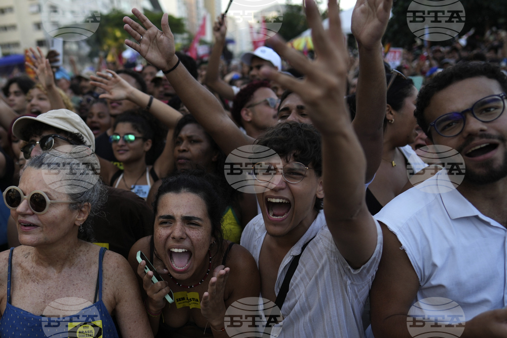 Demonstrators protest an amnesty bill that could benefit former President Jair Bolsonaro and his allies convicted for a coup attempt, in Rio de Janeiro, Sunday, Sept. 21, 2025. (AP Photo/Silvia Izquierdo)
