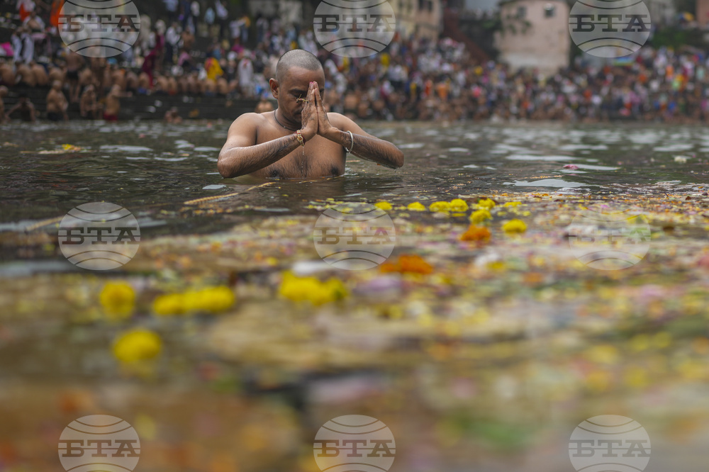 A Hindu devotee performs rituals on the occasion of Mahalaya, an auspicious day to pay homage to ancestors in Mumbai, India, Sunday, Sept. 21, 2025. (AP Photo/Rafiq Maqbool)