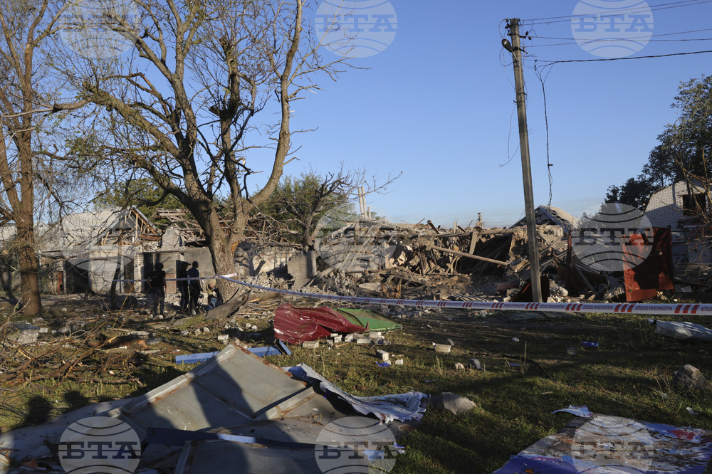 In this photo provided by the Ukrainian Emergency Service, a firefighter stands near a damaged house after a Russian strike in Zaporizhzhia, Ukraine, Monday, Sept. 22, 2025. (Ukrainian Emergency Service via AP Photo)