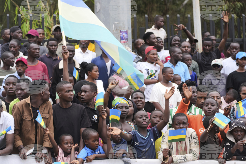 Spectators stand by the track to watch the women's Under 23 individual time trial event, at the road cycling World Championships in Kigali, Rwanda, Monday, Sept. 22, 2025. (AP Photo/Jerome Delay)