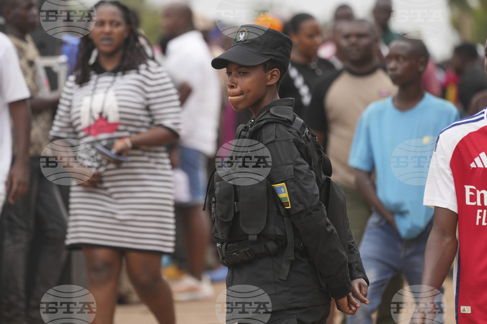 A security officer watches over the men's Under 23 individual time trial event, at the road cycling World Championships in Kigali, Rwanda, Monday, Sept. 22, 2025. (AP Photo/Jerome Delay)