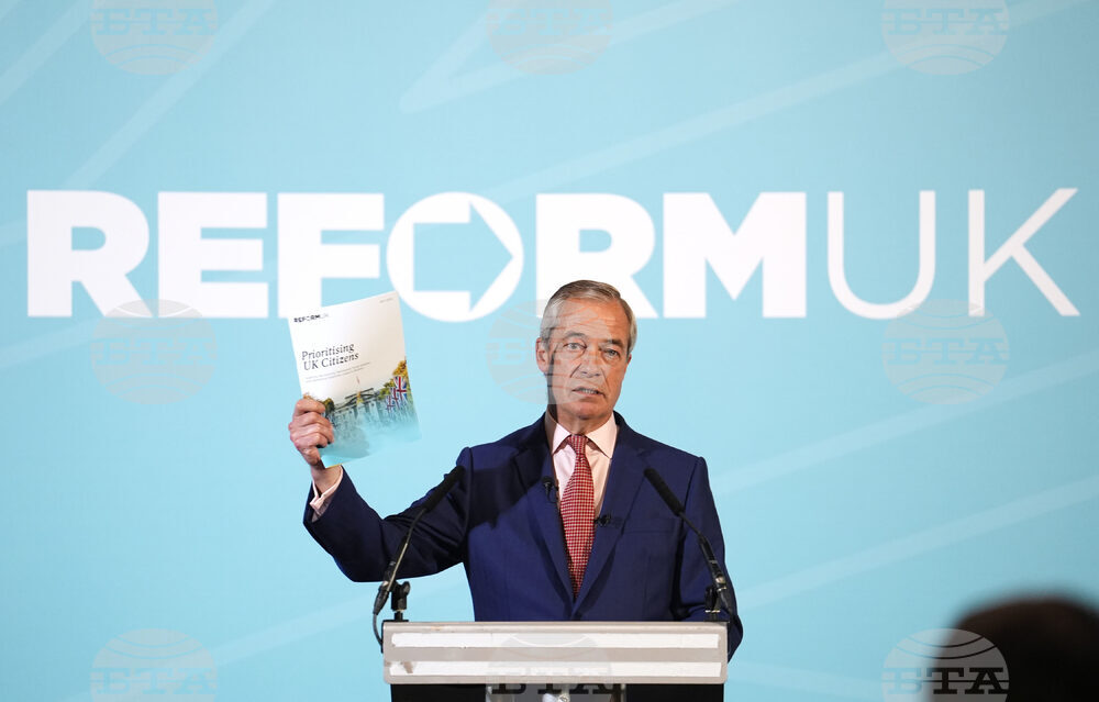 Party leader Nigel Farage speaks during a Reform UK press conference at the Royal Horseguards Hotel, London, Monday, Sept. 22, 2025. (Jordan Pettitt/PA via AP)