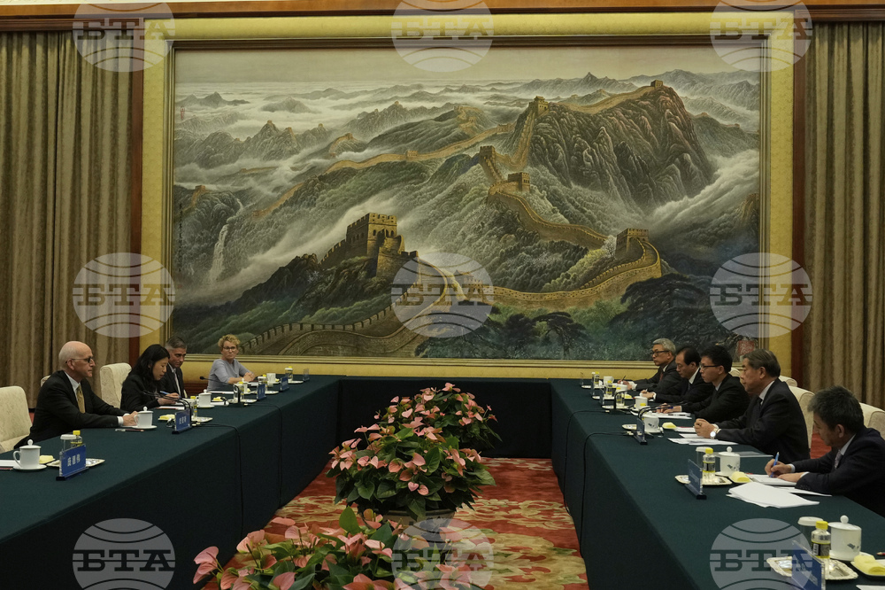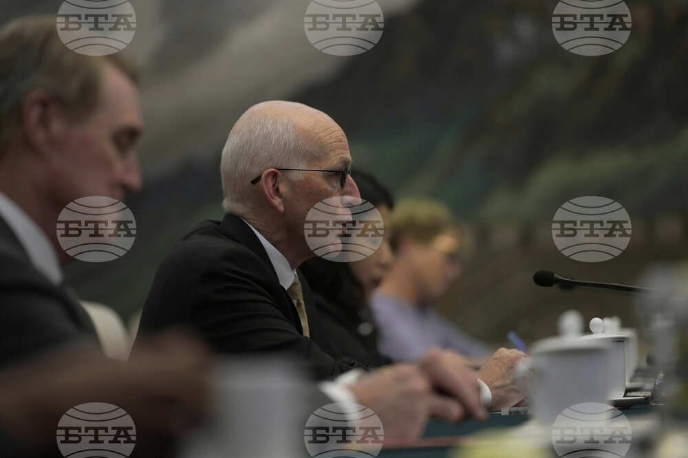 Rep. Adam Smith, D-Wash, third from left, leads a bipartisan group of U.S. lawmakers in a meeting with Chinese Vice Premier He Lifeng, unseen, at the Great Hall of the People in Beijing, China, Monday, Sept. 22, 2025. (AP Photo/Mahesh Kumar A., Pool)
