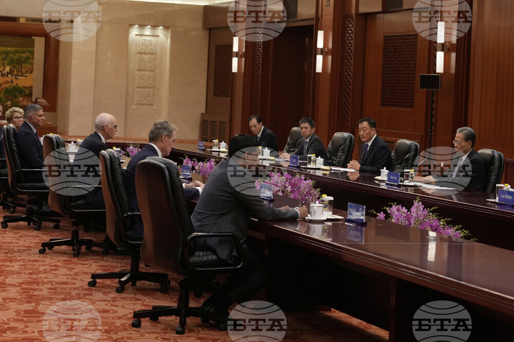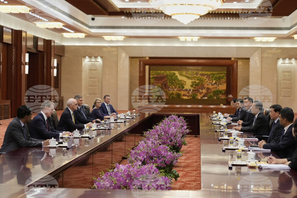 Chinese Vice Premier He Lifeng, second from right, speaks with Rep. Adam Smith, D-Wash, left, as he leads a bipartisan group of U.S. lawmakers at the Great Hall of the People in Beijing, China, Monday, Sept. 22, 2025. (AP Photo/Mahesh Kumar A., Pool)
