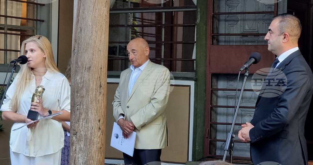 Пловдив (22 септември 2025) Академик Владимир Зарев е тазгодишният носител на Голямата награда „Христо Г. Данов” за цялостен принос в националната книжовна култура. Министърът на културата Мариан Бачев обяви, че отличието ще бъде връчено лично на академик Зарев в Министерството през следващите дни. На тържествена церемония в двора на къщата музей „Христо Г. Данов” в Стария град на Пловдив бяха раздадени и други отличия в различни категории. На снимката: Лилия Старева (вляво) получи награда за книгата си „Морски приказки“ в категорията „Автор на издание за деца“.