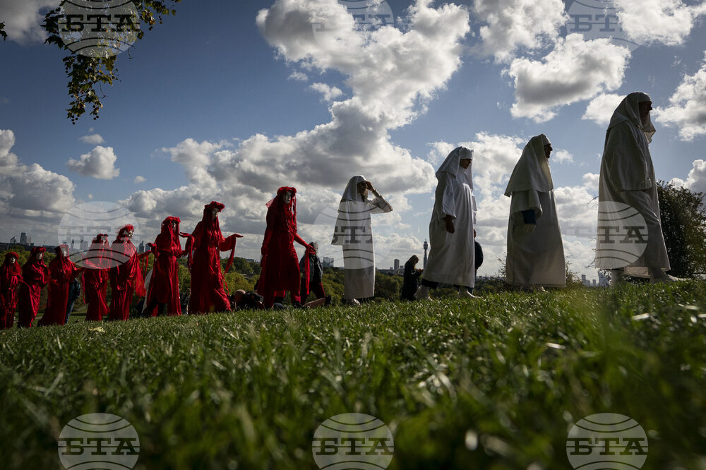 Members of the Druid Order perform a ceremony to celebrate the autumn equinox on Primrose Hill in London, Monday, Sept. 22, 2025. (Aaron Chown/PA via AP)